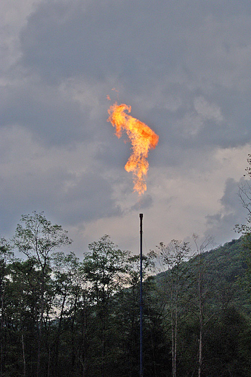 Marcellus Gas Well Drilling Site Flaring near Cherry Springs Dark Sky Park