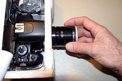 4. Thread 2" nosepiece or reducer through front of cooler into camera body, but don't fully tighten: