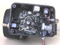 The plastic project box was mounted on the rectangular aluminum heat sink using nylon screws and spacers. Three toggle switches were installed for the peltier, fan and anti-blooming. The anti-blooming switch is connected to the yellow wire of the quickcam cable to the connector on the circuit board. For details on the AGB modification see Dave Allmon's site.