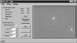On the right is a screen dump of a raw image of M51 and the settings used in QCV2. 13 exposures of 90 seconds each were stacked after subtracting one dark frame for the resulting image on left.