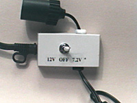 I modified the imager in order to reduce the lead length from the CCD to the circuit board from 2.75 inches to 2.0 inches. This involved moving the project case towards the front about an inch and placing the circuit board on the very bottom of the project case. This was done to avoid suspected damage to CCD chip from leads that are too long. I made a switch to select 12 volts from a marine battery or 7.2 volts from a 2000mAH model racing car battery. Here's a pic of the switch: